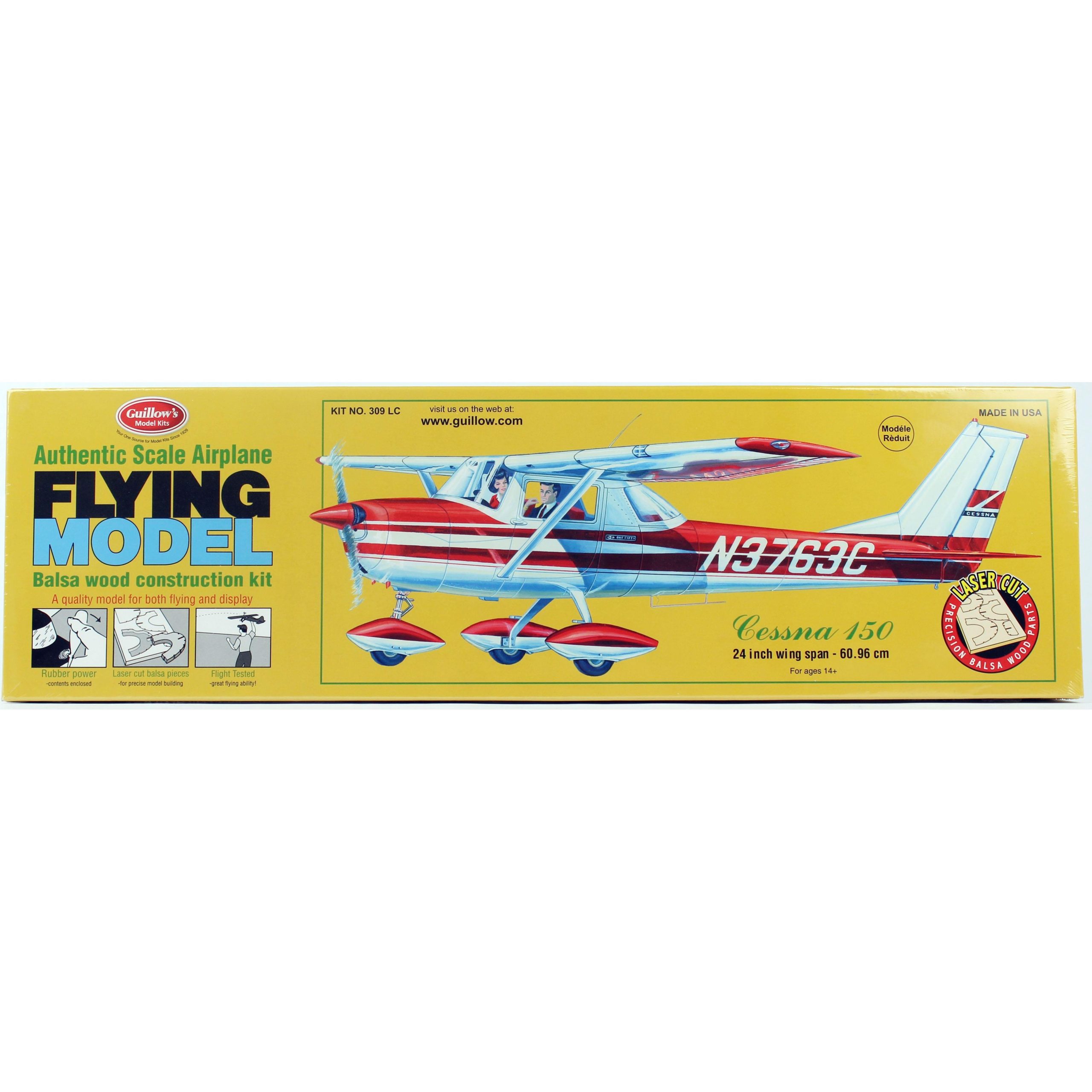 1/16 Cessna 150 60cm lazer kesim lastik motorlu balsa uçak kiti, Guillows 309