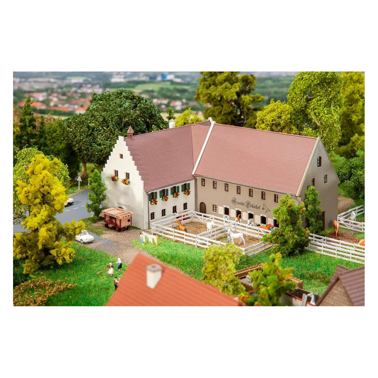 Erlendof Harası, atların yetiştirilmesi ve bakımı için tasarlanmış geleneksel bir yapıdır. Bu tür çiftlikler, özellikle Avrupa’nın kırsal bölgelerinde yaygındır. Model tren düzeneklerinde ve diorama projelerinde, bu tür yapılar, kırsal yaşamı, tarımı ve atçılığı simüle etmek için harika bir unsurdur.