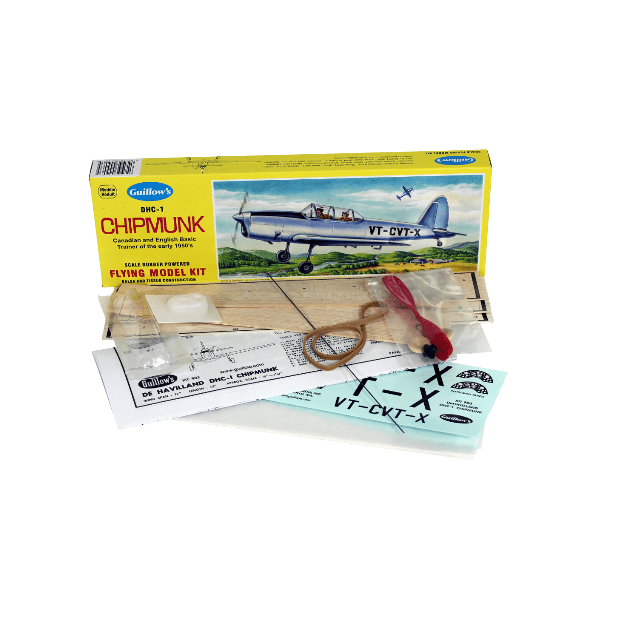 1/24 Chipmunk 43cm balsa lastik motorlu uçak kiti, Guillows 903