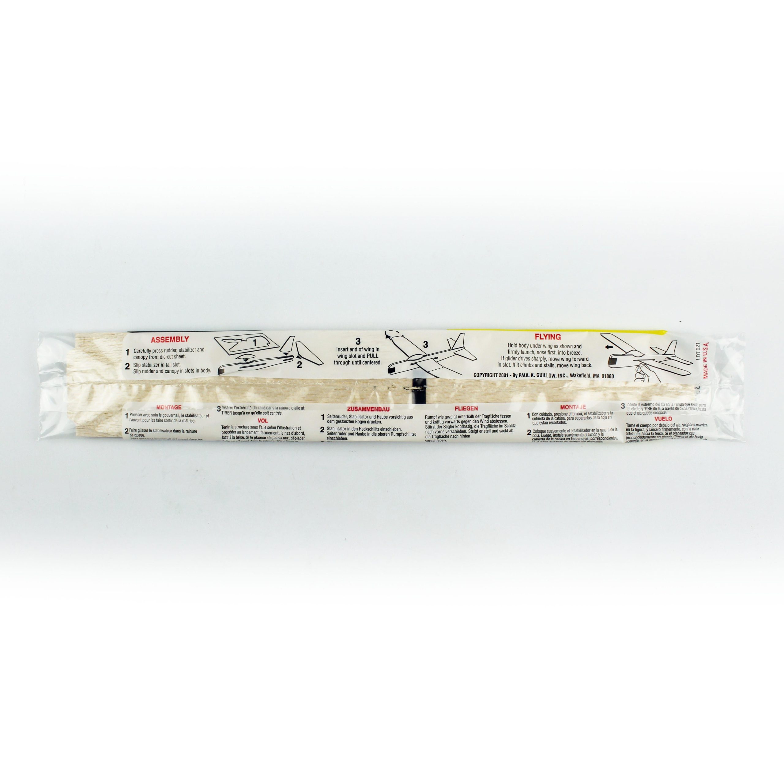 Guillow’s balsa uçak kitleri içerisinden yapıştırıcı ve iğneler çıkmaz. Bu modeli kolay bir şekilde yapmak için ahşap tutkalı ve toplu iğneye ihtiyacınız var.