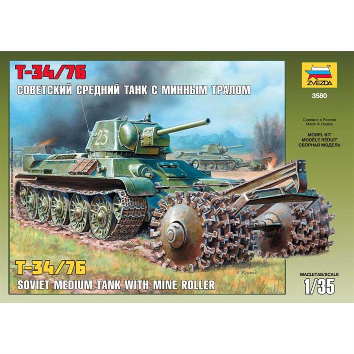 Zvezda 3580 1/35 T-34/76 Mayın Temizleyicili Sovyet Tankı Maketi, yüksek kaliteli malzemeleri ve gerçekçi detayları ile sizin koleksiyonunuza değer katacak.