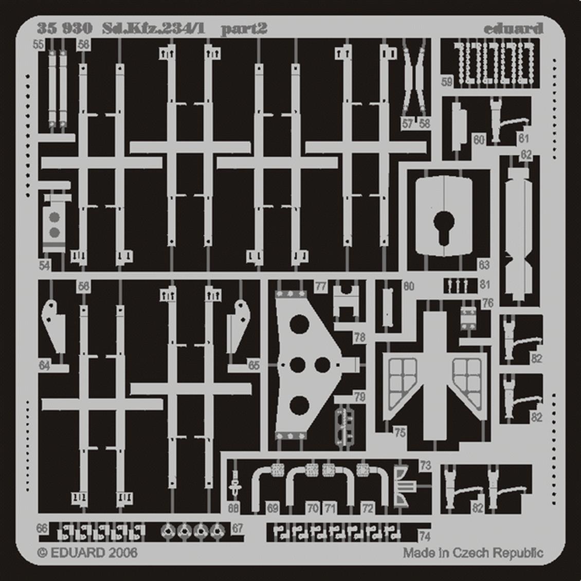 1/35 ölçek SD.KFZ.234/1 SCHWERER PANZERSPÄHWAGEN (2 plastik maketi yapmak için ilk önce çerçeveden çıkart ve yapıştırıcı yardımıyla birleştir. Daha sonra yapım kılavuzu içerisinde yer alan renklere airbrush veya fırça yardımıyla boya.;