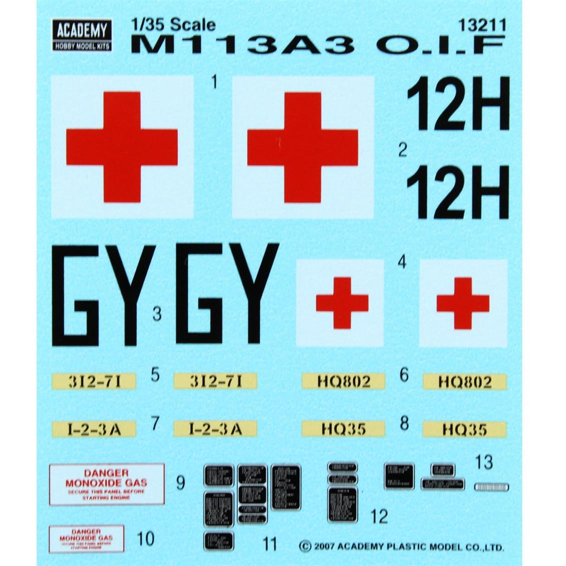Academy 13211 1/35 ölçek M113 Amerikan Zırhlı Personel Taşıyıcı ( Irak 2003) plastik maketi yapmak için ilk önce çerçeveden çıkart ve yapıştırıcı yardımıyla birleştir. Daha sonra yapım kılavuzu içerisinde yer alan renklere airbrush veya fırça yardımıyla boya.;