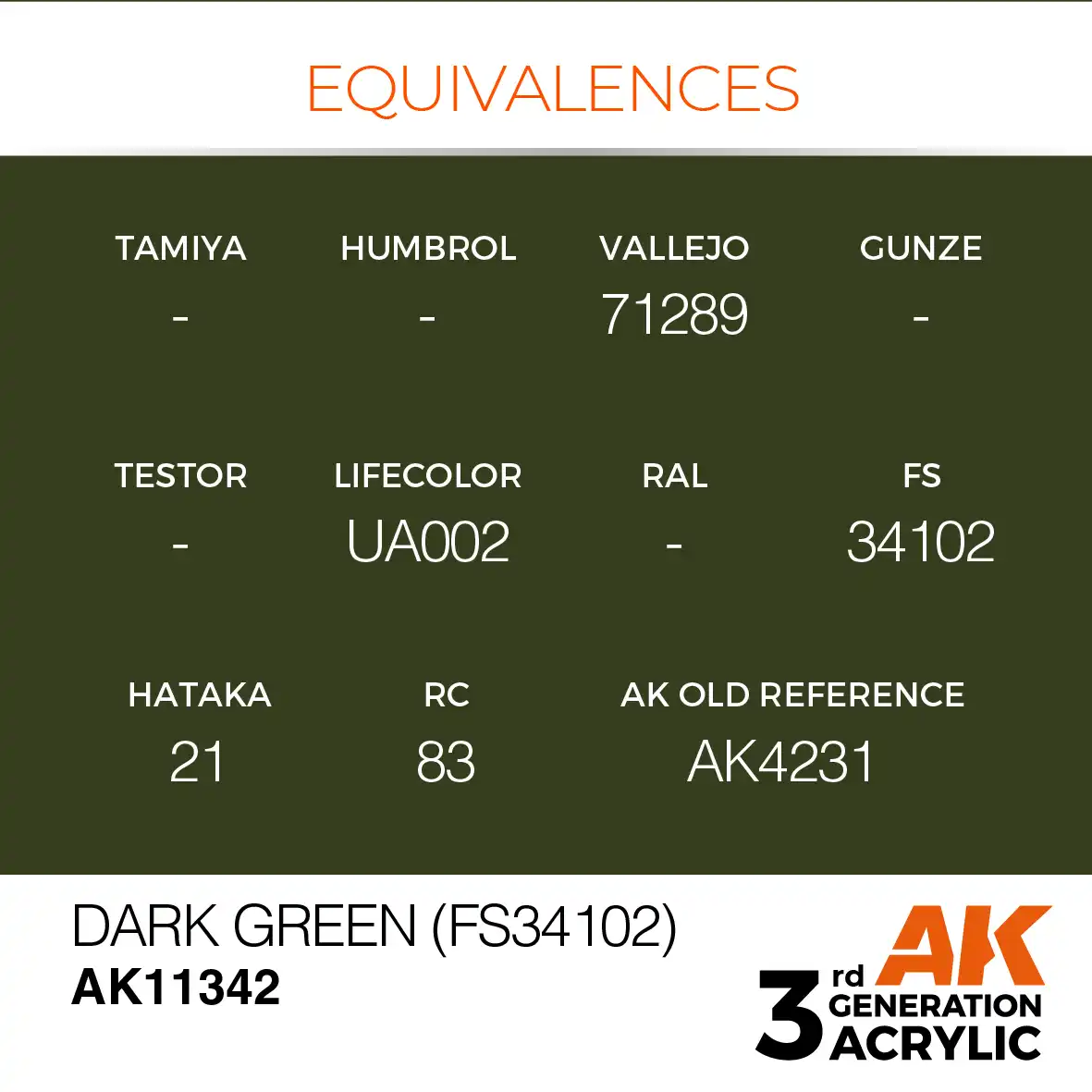 AK Interactive 11342, 17 ml. 3GEN Dark green FS34102 AFV maket boyası