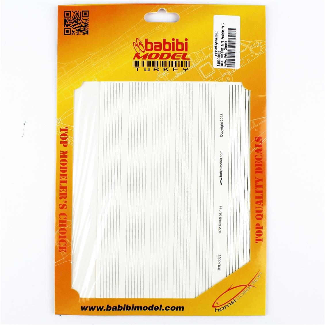 Babibi BD3-0032, 1/72 ölçekli model uçaklar, askeri araçlar ve diorama projeleri için özel olarak tasarlanmış perçinler ve çizgiler çıkartmalarını içerir. Bu seti kullanarak, modellerinize gerçekçi detaylar ekleyebilir ve her projede profesyonel bir görünüm elde edebilirsiniz.