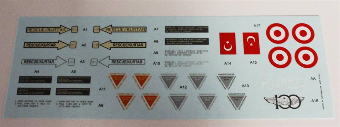 - Set İçeriği: Turaf F-16 C/D 191. Kobra Filo için özel olarak tasarlanmış dekal seti
