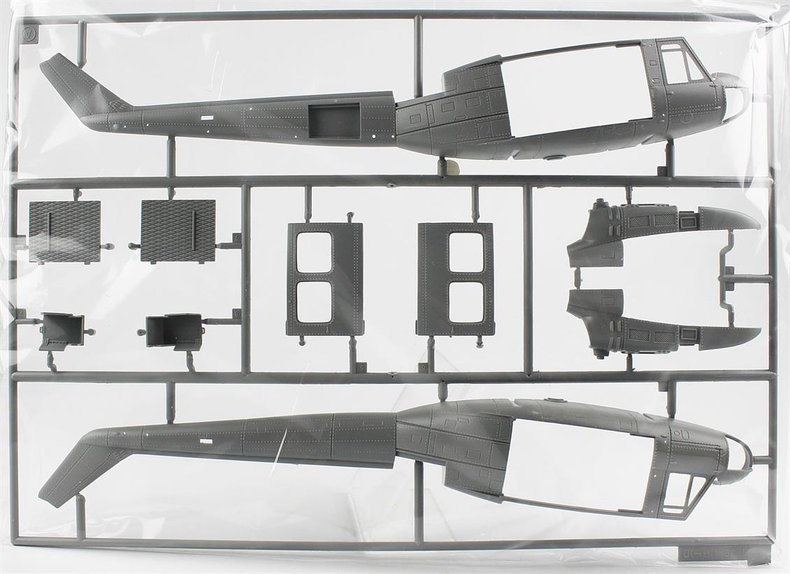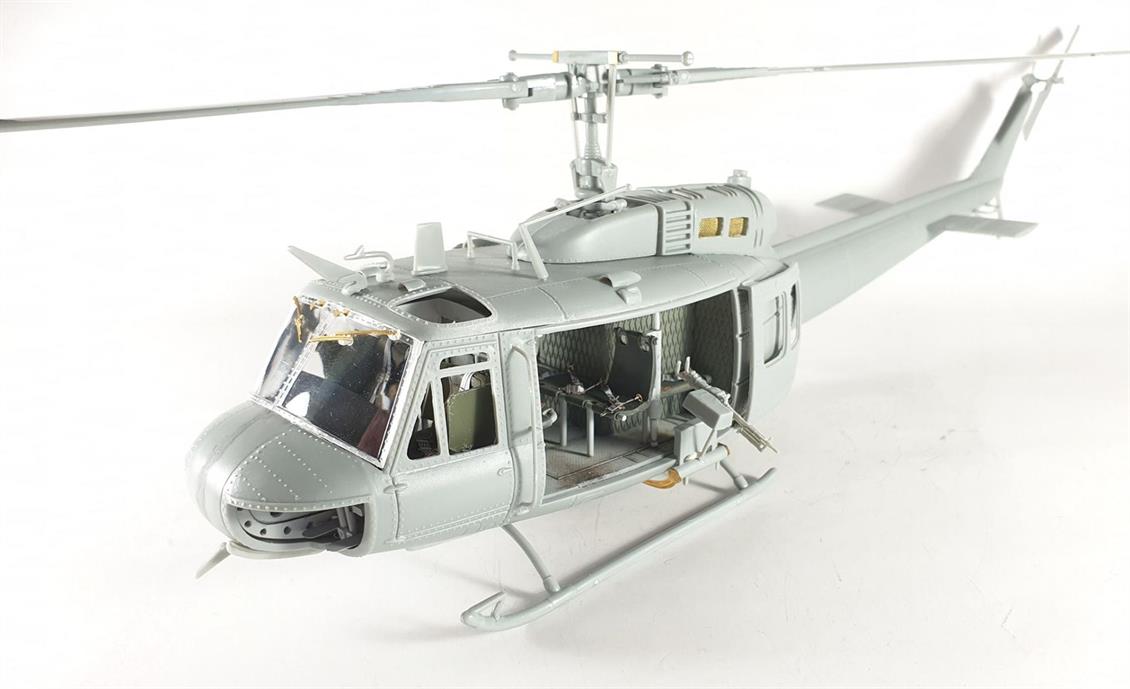 1/35 ölçek UH-1D Huey Helikopter plastik maketi yapmak için ilk önce çerçeveden çıkart ve yapıştırıcı yardımıyla birleştir. Daha sonra yapım kılavuzu içerisinde yer alan renklere airbrush veya fırça yardımıyla boya.;