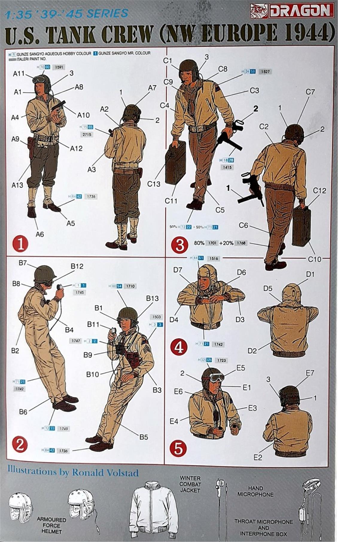 1/35 ölçek ABD Tank Mürettebatı (Nw Europe 1944) Asker Figür plastik maketi yapmak için ilk önce çerçeveden çıkart ve yapıştırıcı yardımıyla birleştir. Daha sonra yapım kılavuzu içerisinde yer alan renklere airbrush veya fırça yardımıyla boya.;