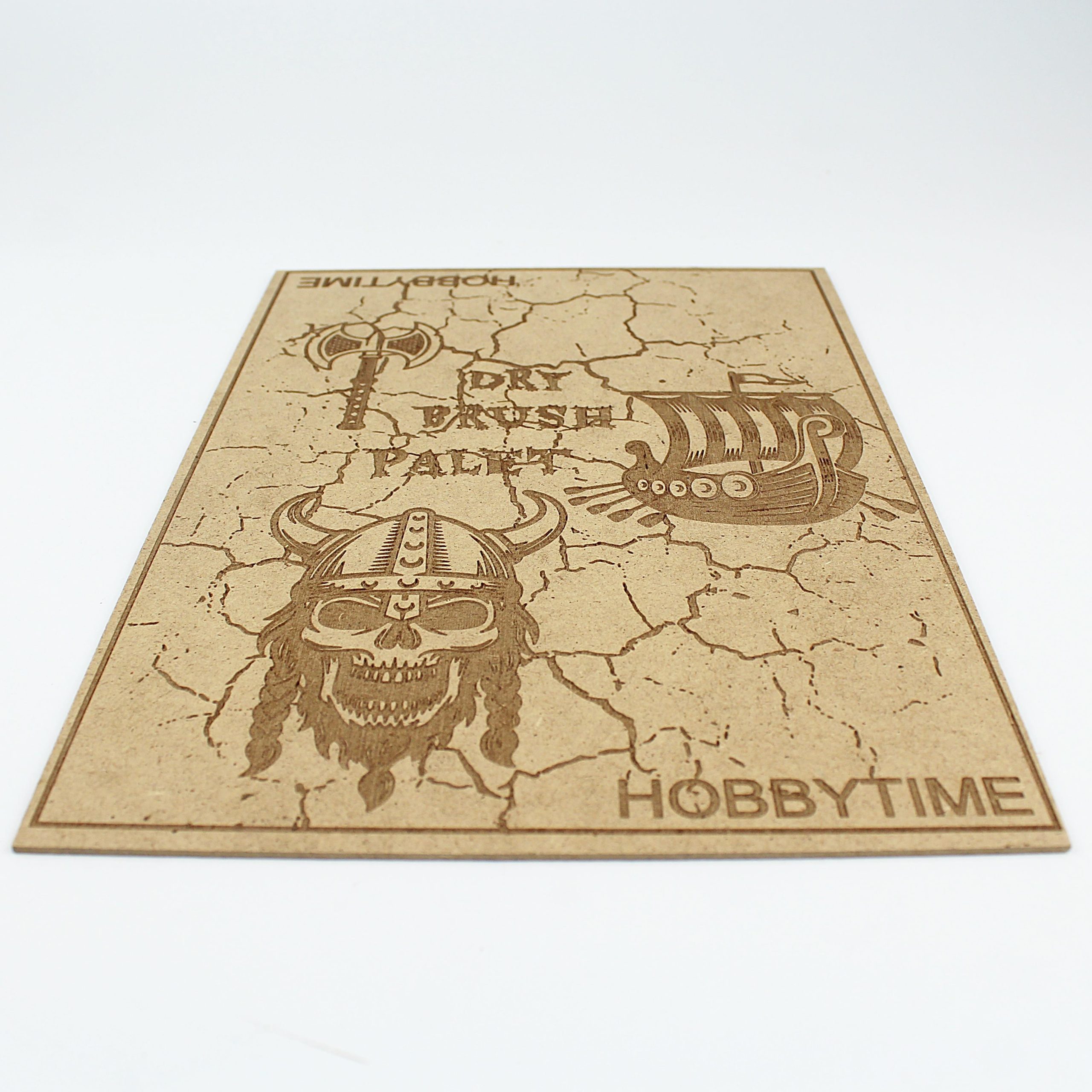 Viking temalı bu palet, dry brush (kuru fırça) tekniği için özel tasarlanmıştır. 21×30 cm boyutundaki MDF plaka üzerine lazerle işlenen Viking motifleri, fırçanızdaki boya yoğunluğunu test etmeniz için mükemmel bir doku sunar.