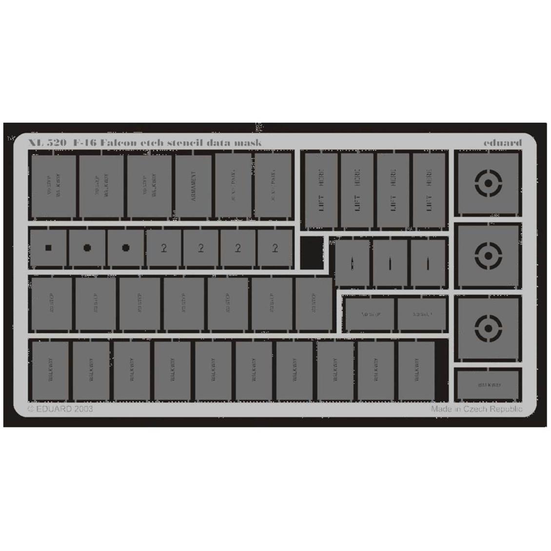 Eduard XL520, modelinizde gerçekçi detaylar oluşturmak için gerekli bir üründür. F-16 Etch Stencil Data Mask, boyama maskeleri kategorisinde lider bir ürün olarak karşınıza çıkar.