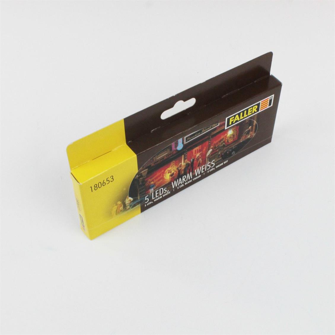 Kutu içerisinde Faller 180653 LED Ampül Günışığı Renkli için 5 adet LED ampül ve kullanım kılavuzu bulunmaktadır.
