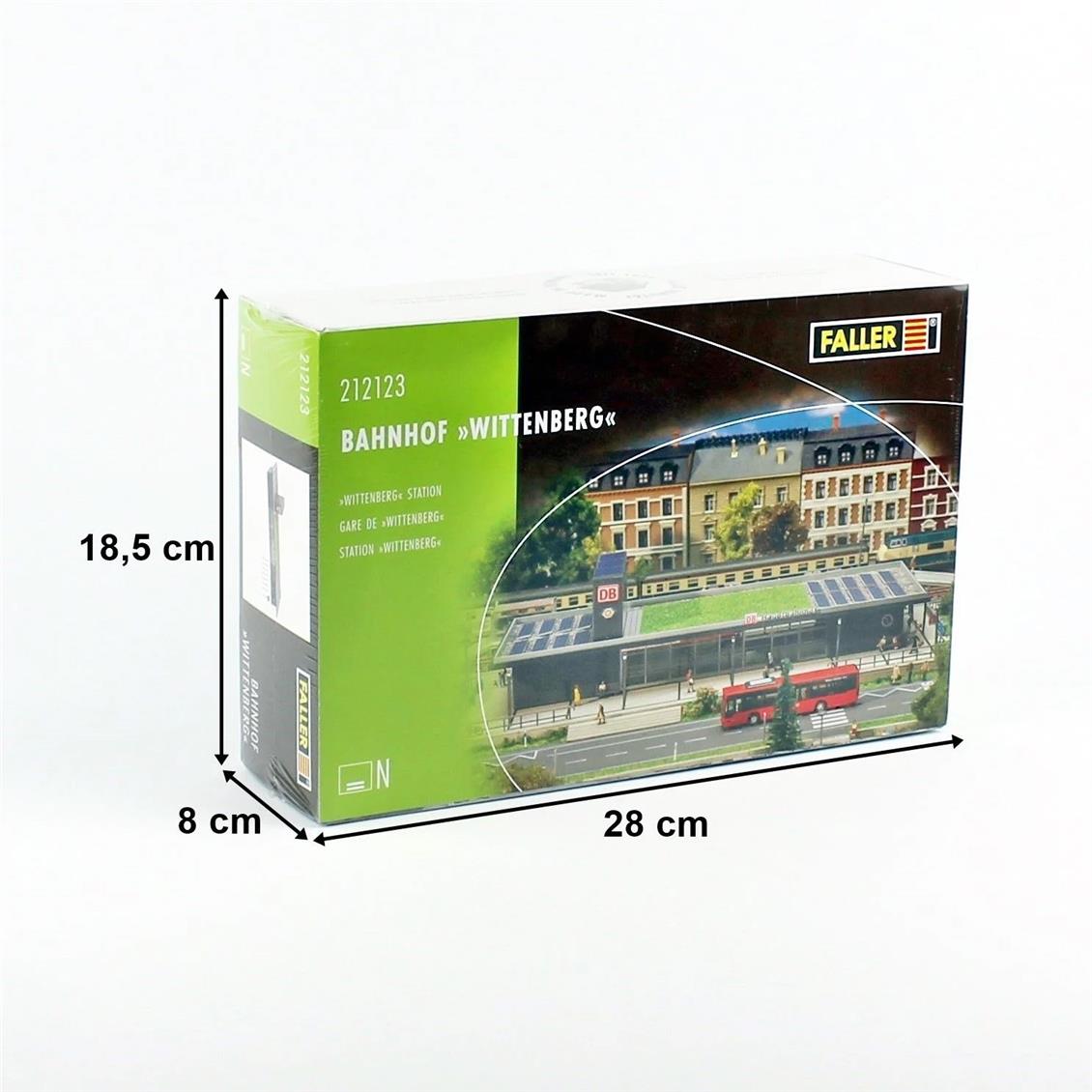 Kutu içerisinde Faller 212123 Wittenberg İstasyonu için istasyon yapısı ve gerekli detaylar bulunmaktadır.
