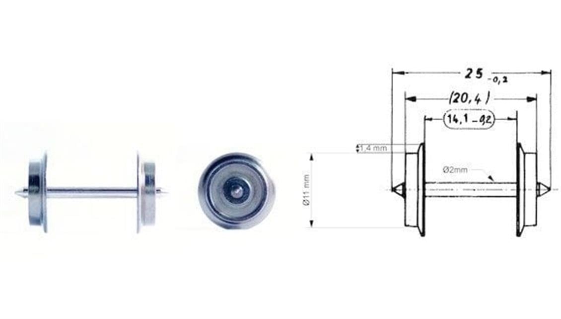 1/87 ölçek Tekerlek Ve Aks-A.C.Voltaj Içın (25Mm) model trenler için yedek parça. Arıza ve bakım için kullanılır.;