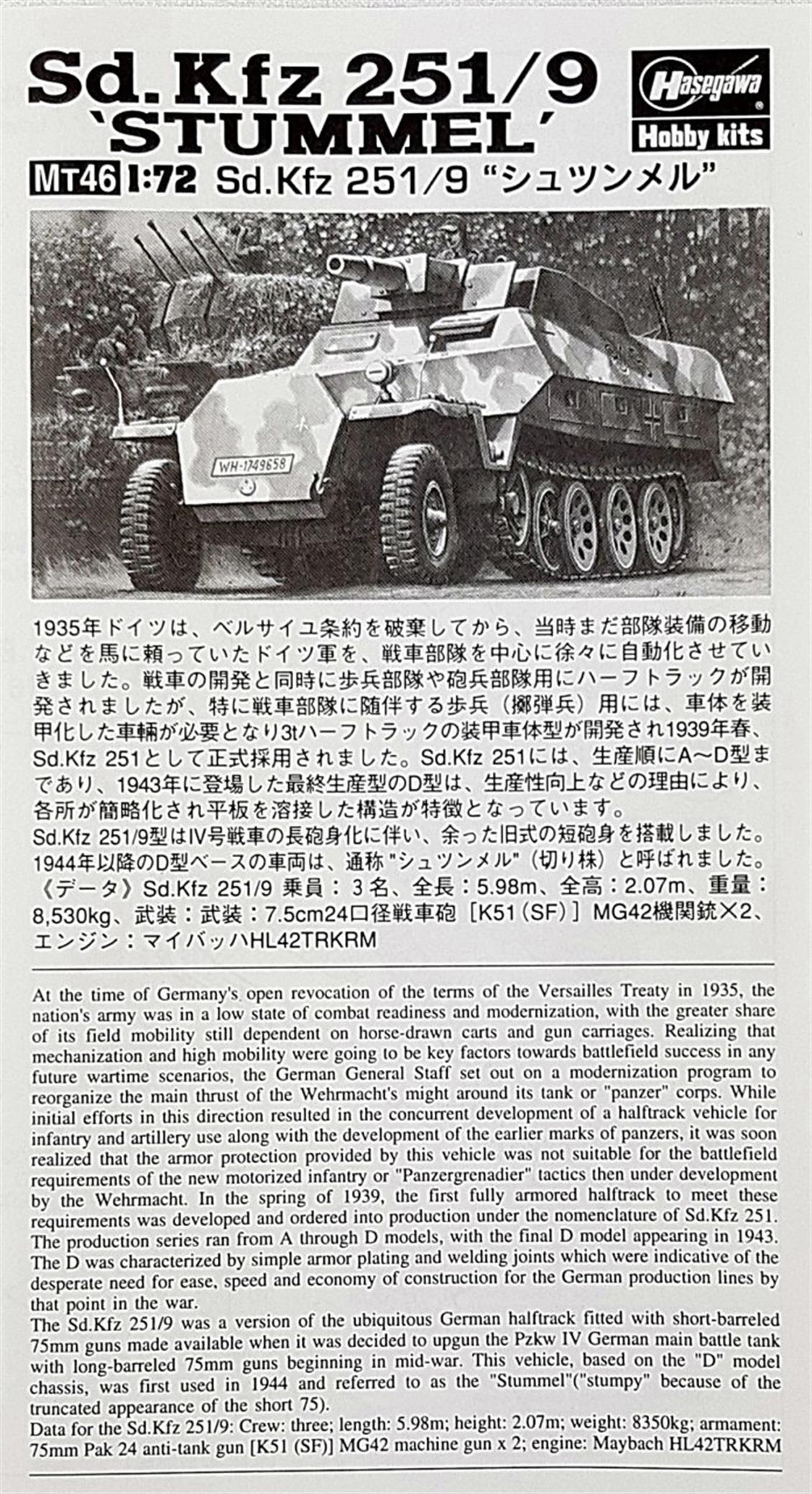 1/72 Sd.Kfz 251/9 (Stummel) Yarı Paletli Personel Taşıyıcı Maketi, Hasegawa 31146