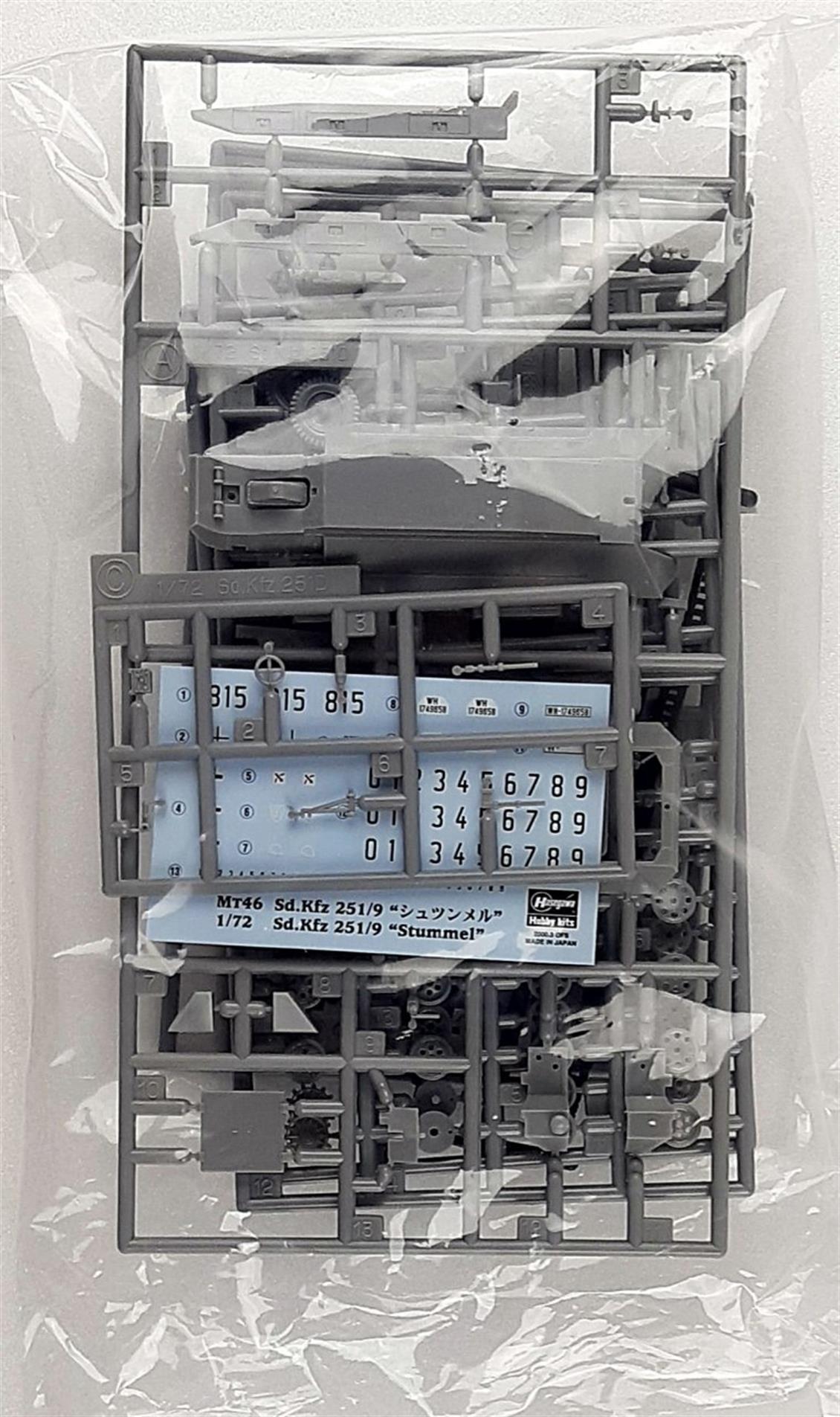 Kutu içerisinde 1/72 ölçekli Sd.Kfz 251/9 (Stummel) maketi için plastik parçalar, montaj talimatları ve önerilen boyama şemaları bulunmaktadır. Montaj ve boyama için gerekli ek malzemeler kutuya dahil değildir.