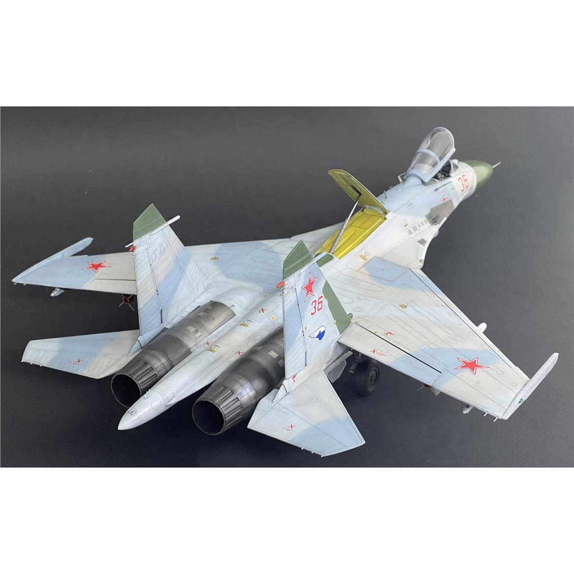 1/48 ölçek Su-27 Flanker (Erken Dönem) Savaş Uçağı plastik maketi yapmak için ilk önce çerçeveden çıkart ve yapıştırıcı yardımıyla birleştir. Daha sonra yapım kılavuzu içerisinde yer alan renklere airbrush veya fırça yardımıyla boya.;