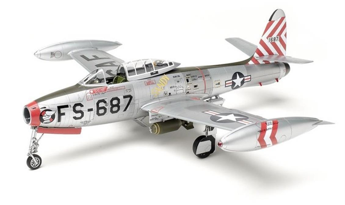 1/32 ölçek F-84G Thunderjet Savaş Uçağı Demonte Plastik plastik maketi yapmak için ilk önce çerçeveden çıkart ve yapıştırıcı yardımıyla birleştir. Daha sonra yapım kılavuzu içerisinde yer alan renklere airbrush veya fırça yardımıyla boya.;