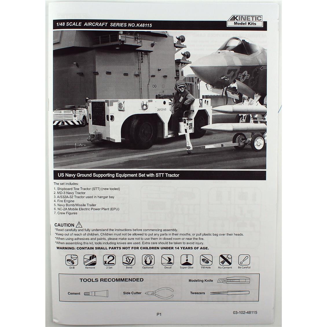 Kutu içerisinde 1/48 ölçekli ABD Donanması yer destek ekipmanları ve çekici modelleri, montaj talimatları, detaylı parça setleri ve özelleştirme için çıkartmalar bulunur. Ayrıca boyama şemaları da dahil edilmiştir.
