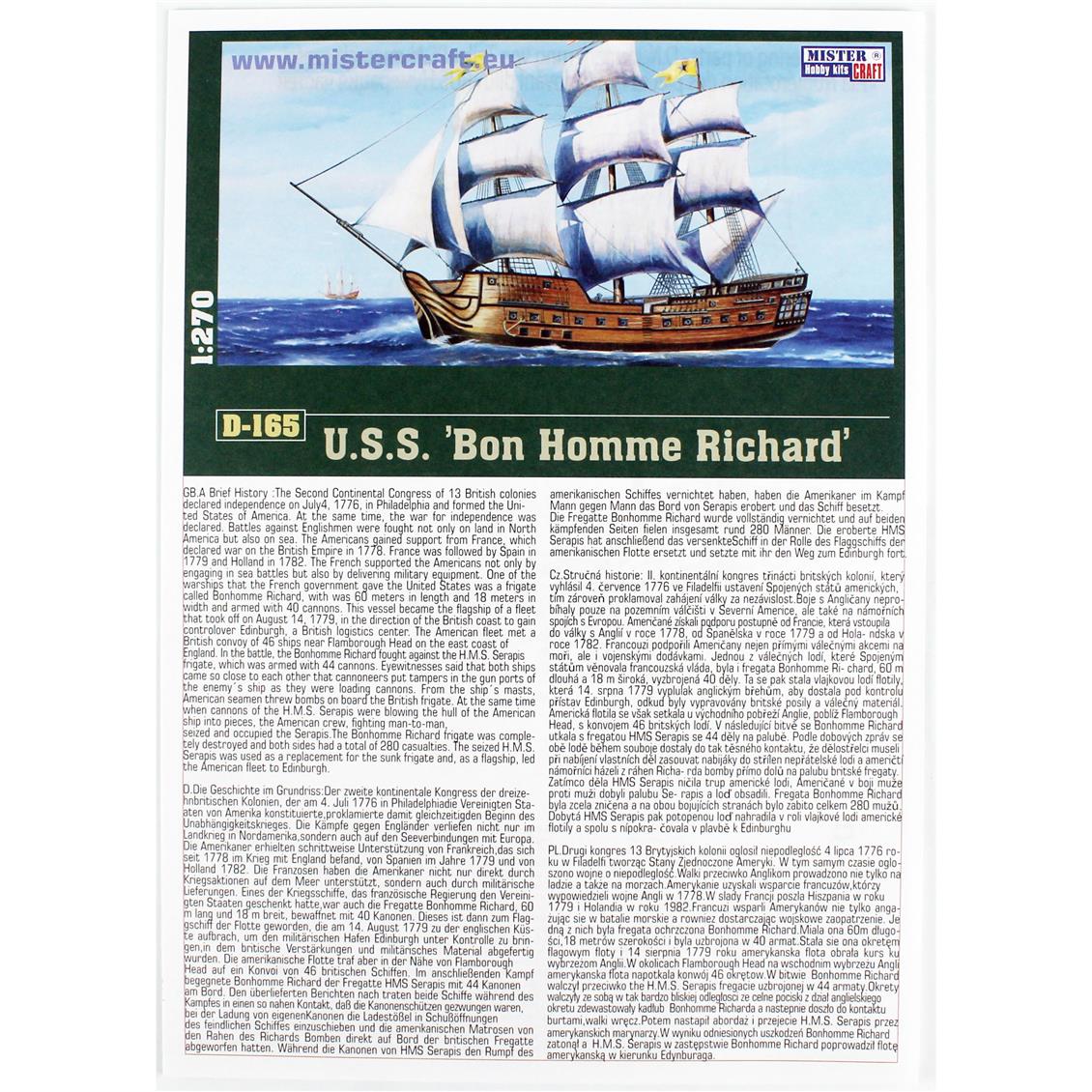 Mister Craft D165ST başlangıç seti ile birlikte gelen ayrıntılı kılavuz, maket yapım sürecinizi kolaylaştıracaktır. Şimdi, USS Bon Homme Richard yelkenli gemisi maketinin detaylı tasarımını keşfedin!