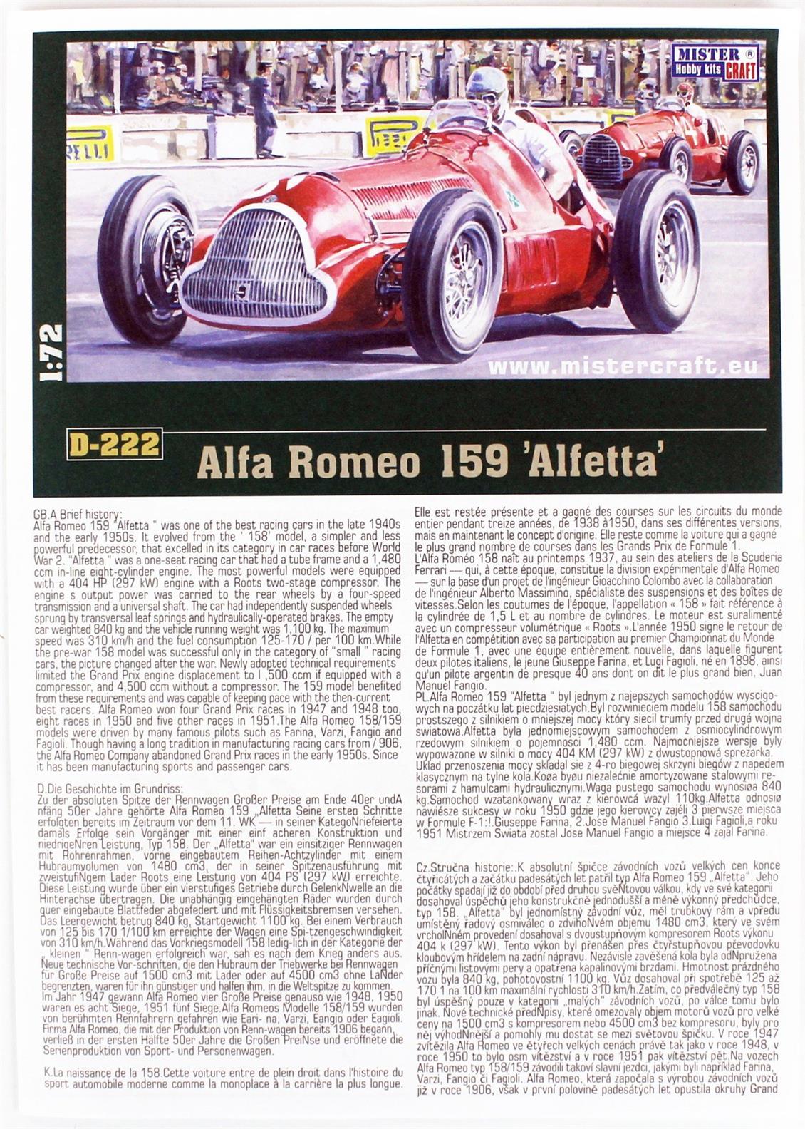 1/24 Alfa Romeo Alfetta Yarış Arabası Maketi, Mister Craft D222
