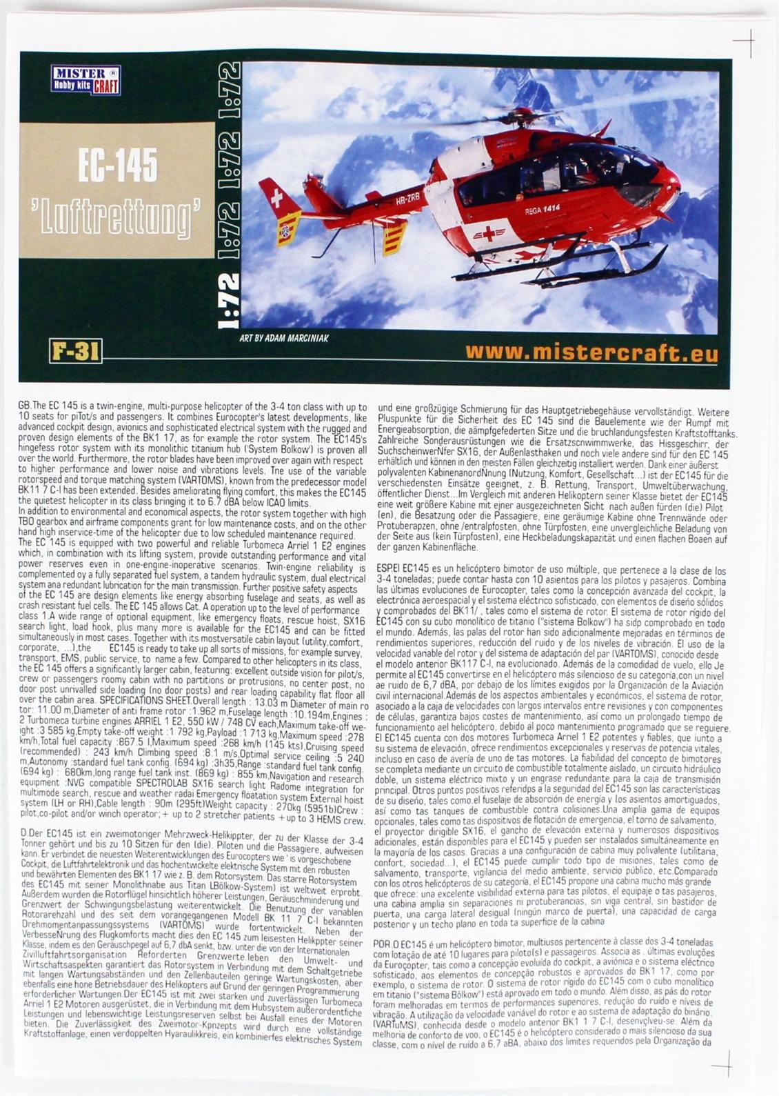 1/72 EC-145 Medicopter 117 (Rega) Çok Amaçlı helikopter Maketi, Mister Craft F031