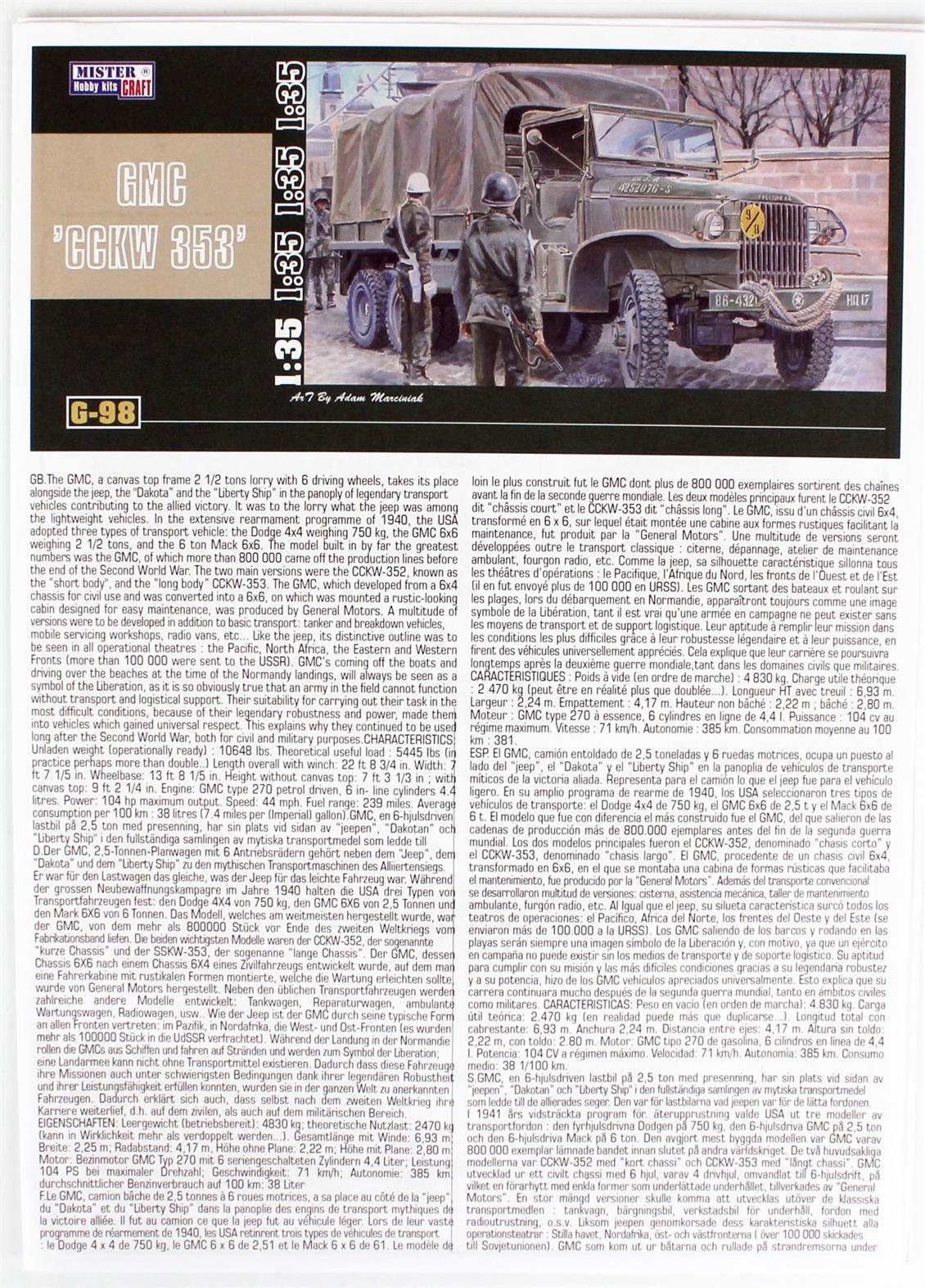 1/35 GMC CKW-353 Askeri Kamyon Maketi, Mister Craft G098