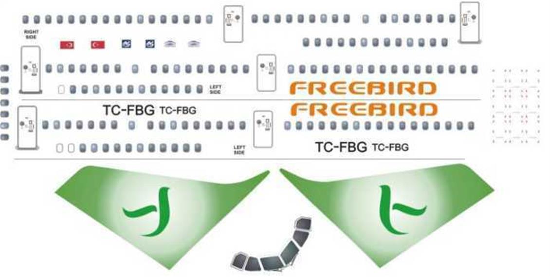1/144 Freebird A-321 -Yeşil Kuyruk Dizaynı, Nazca Decals Frb005