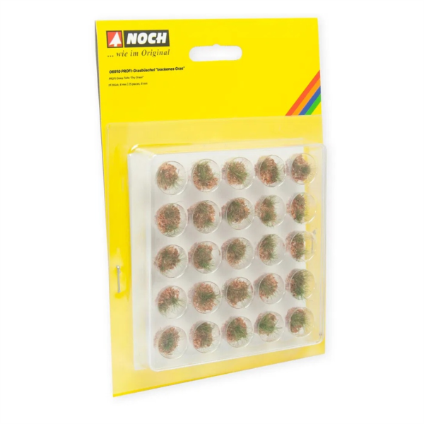 Noch 6910, 25 Adet Kurumuş Çimen Kümeleri ile model demir yollarınızın ve diorama projelerinizin doğal görünümünü zenginleştirin. Bu gerçekçi çim kümeleri, her türlü manzaraya otantik bir dokunuş katmak için tasarlanmıştır.