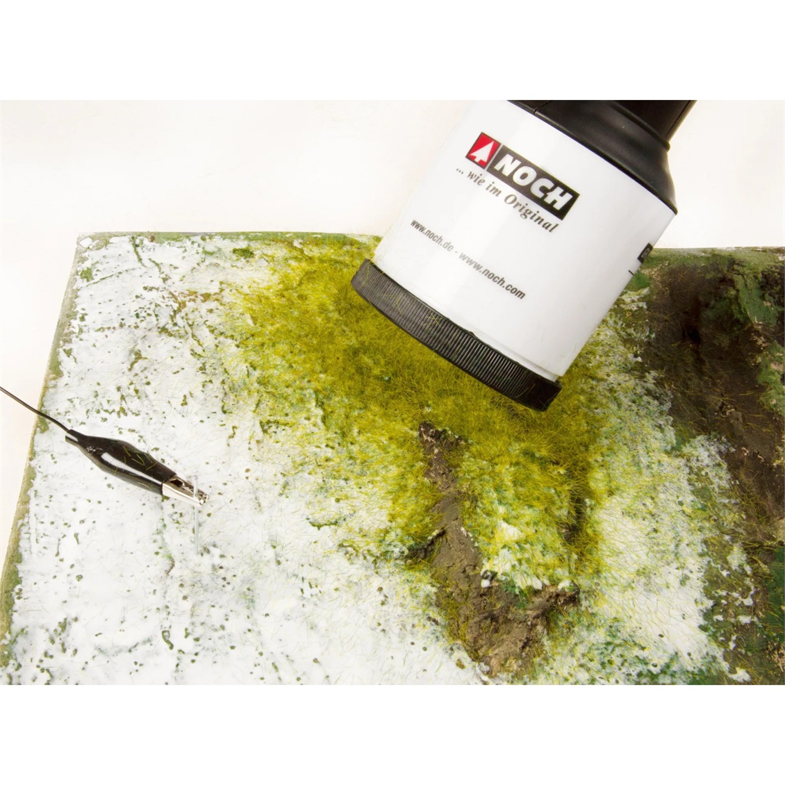 Tarihçe ve Kullanım Alanları: Statik otlama tekniği, 1960’larda Almanya’da geliştirilmiştir ve model demiryolu camiasında hızla popülerlik kazanmıştır. Bu teknik, ince çim veya ot liflerinin yapıştırıcı kullanılarak doğrudan bir yüzeye uygulanmasını sağlar. Noch, bu teknolojiyi kullanarak gerçekçi ve detaylı diorama malzemeleri üretmektedir.