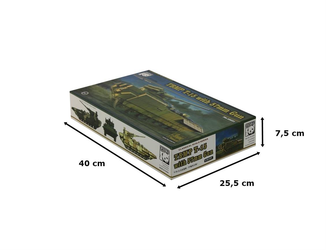 1/35 TBMP T-15 (57mm Gun) Tank Maketi, Panda Hobby 35051, askeri kara araçları koleksiyonunuza benzersiz bir katkı yapmaya hazır! Bu etkileyici tank maketi, Rusya’nın modern zırhlı araç teknolojisini en ince ayrıntısına kadar yansıtan bir başyapıt olarak karşınıza çıkıyor. 1:35 ölçekli bu model, gerçek TBMP T-15 tankının detaylı bir replikası olup, hem modelciler hem de askeri tarih meraklıları için ideal bir seçenek sunuyor.