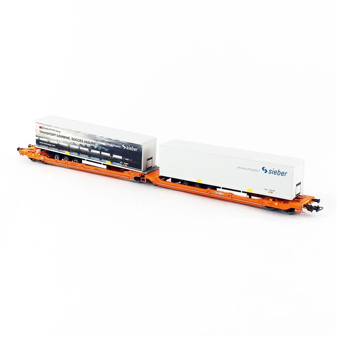 1/87 ölçek Articulated Intermodal Car T3000E Wascosa VI W 2 Sieber Trailers 2 Adet Model Trenile model tren setine yeni yük vagonu ekle.;