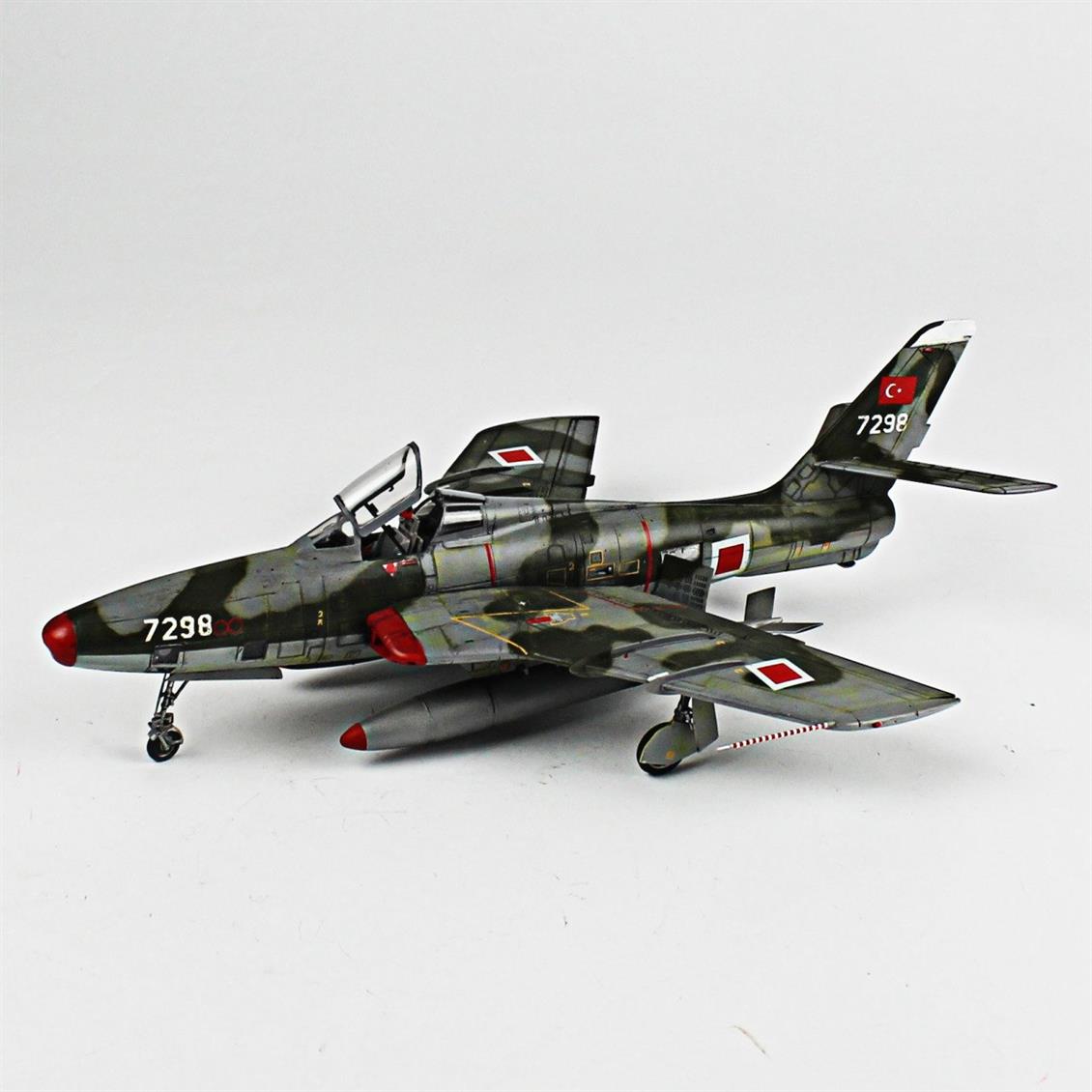 1/48 ölçek RF-84F Thunderflash Plastik Uçak plastik maketi yapmak için ilk önce çerçeveden çıkart ve yapıştırıcı yardımıyla birleştir. Daha sonra yapım kılavuzu içerisinde yer alan renklere airbrush veya fırça yardımıyla boya.;