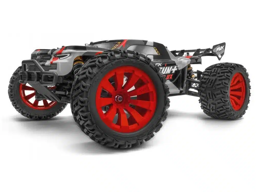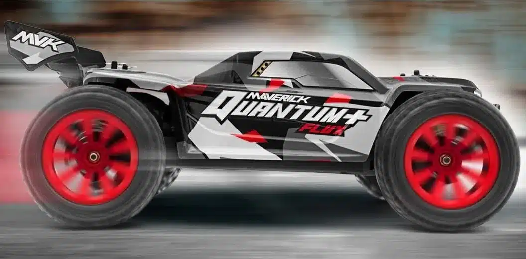 Maverick, 1/10 Quantum+ XT Flux 3S 4WD Fırçasız RC Stadium Truck – Kırmızı arabayı sürmek için 2S veya 3S Lipo Bataryaya, Balance Lipo Şarj Aletine ve Kumanda için 4 adet AA Kalem pile ihtiyacınız var.