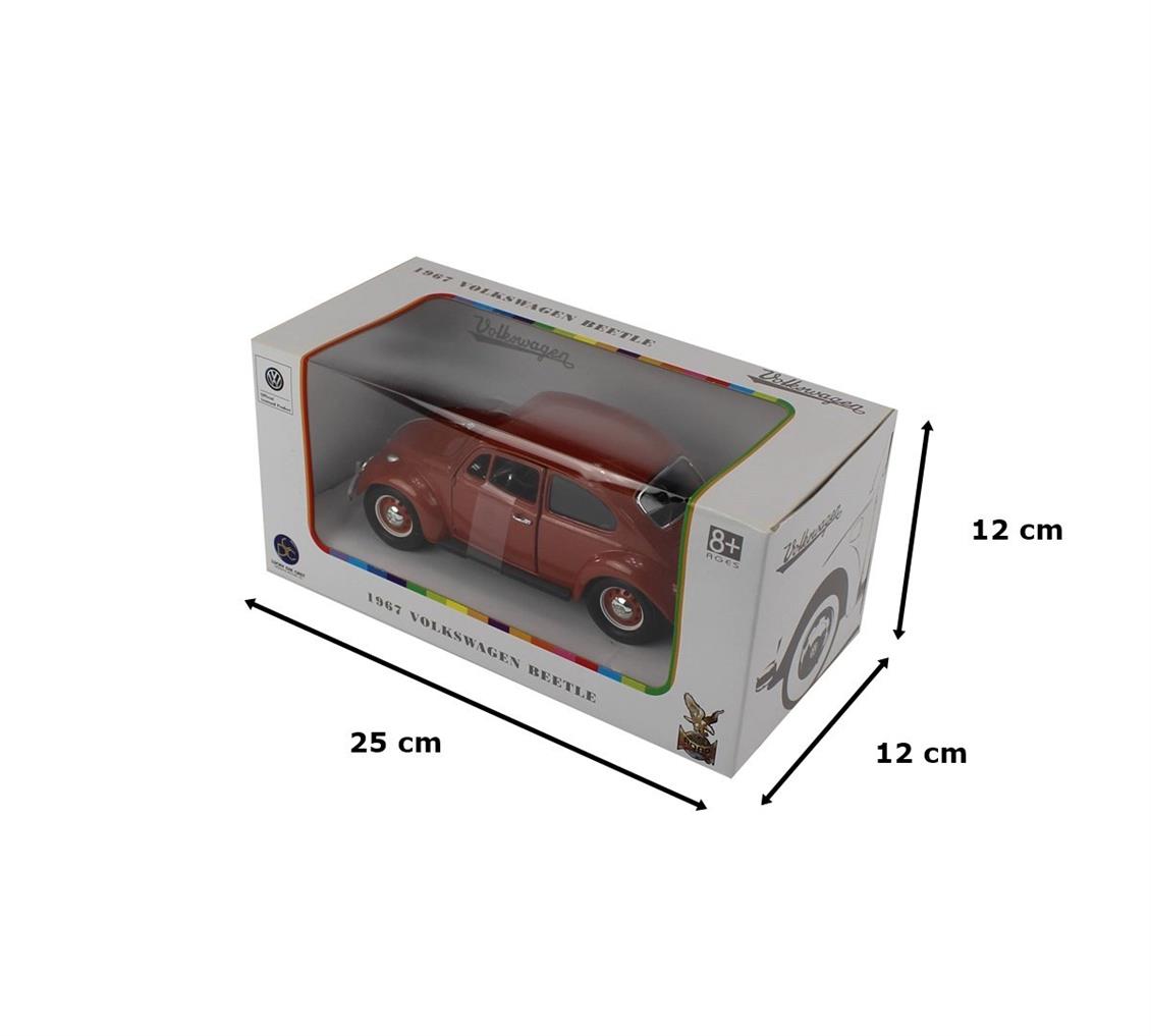 1/24 ölçek 1967 Volkswagen Beetle Brown koleksiyonluk diecasat araba modeli. Sergilemeye hazır metal model.