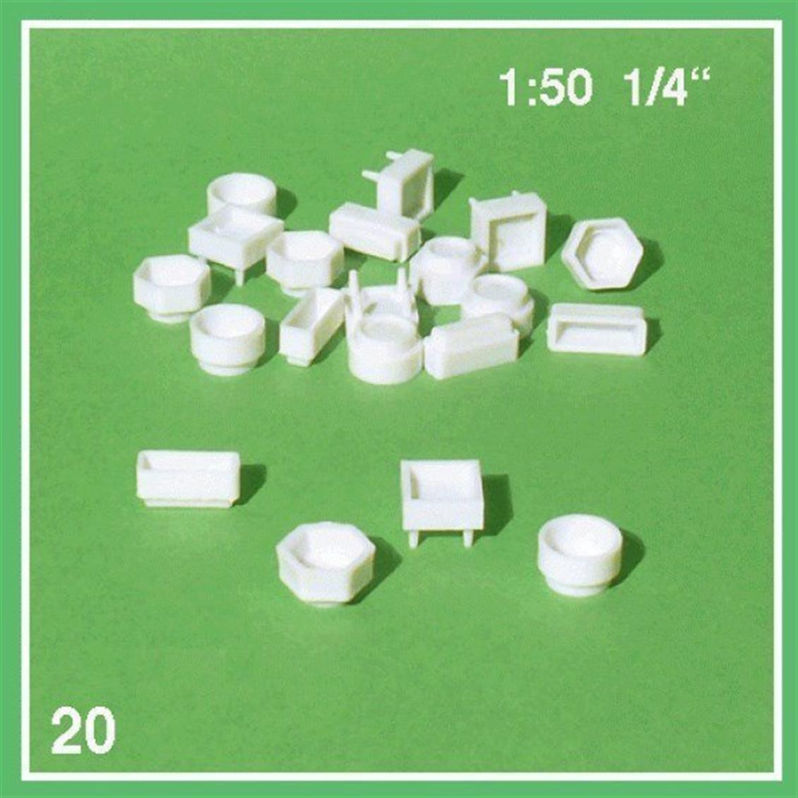 1/50 Saksı Seti-Karışık-Beyaz -20 Adet mimari maketler için kullanılan malzeme.