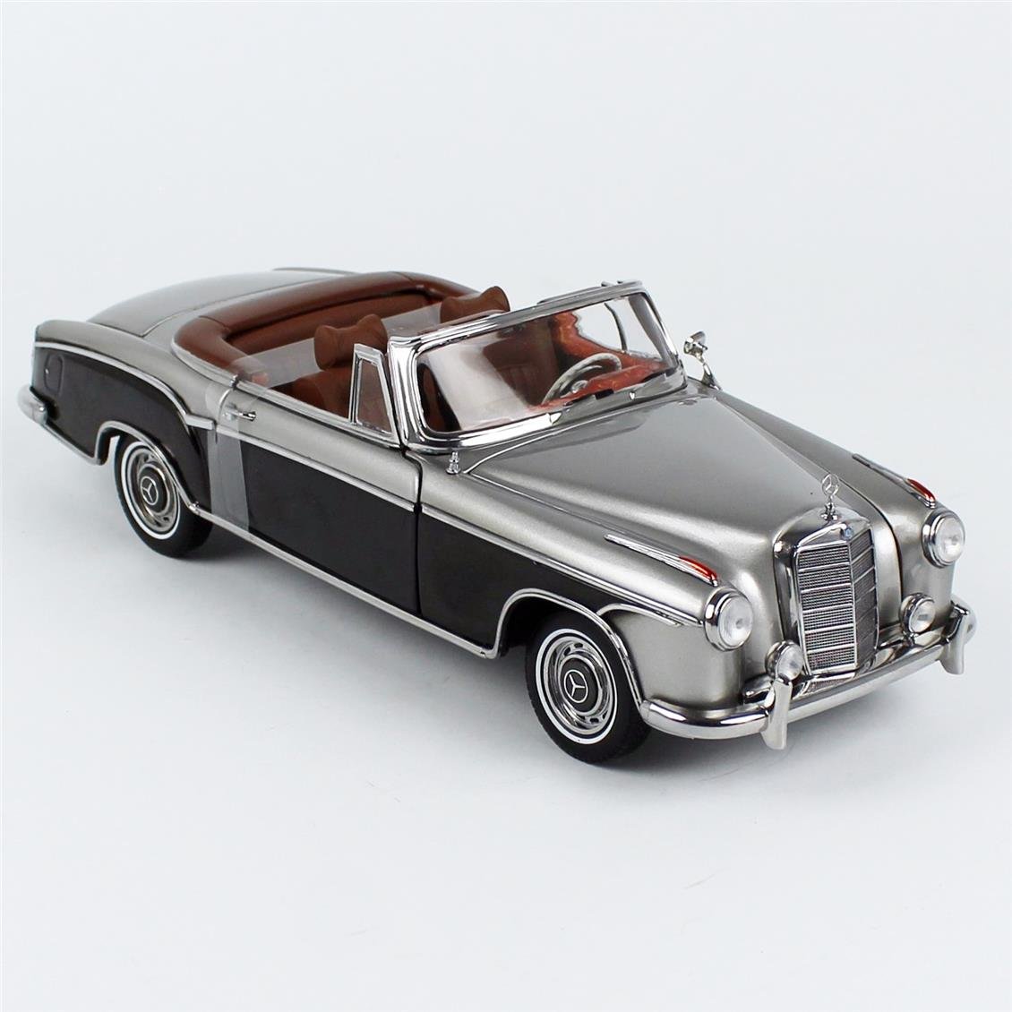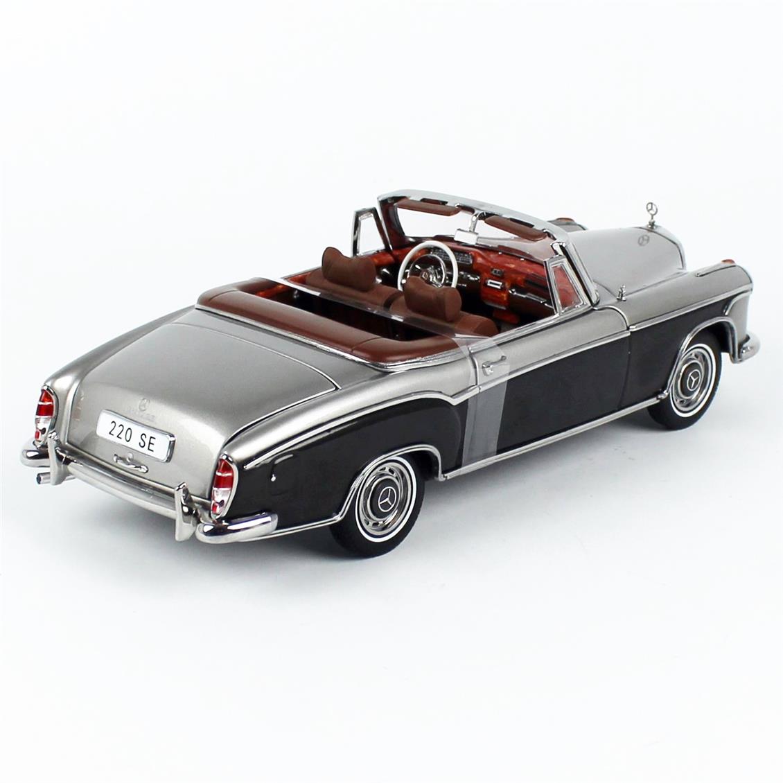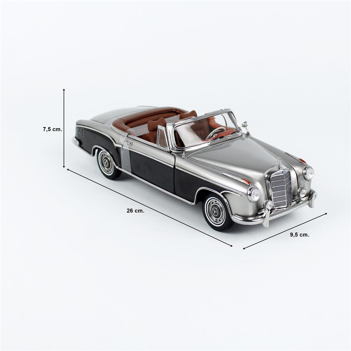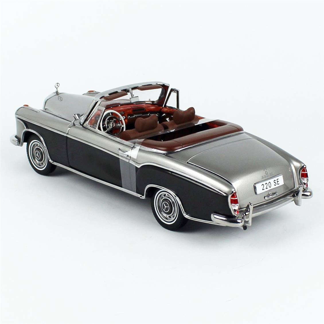 1/18 ölçek 1960 Mercedes-Benz 220 SE Cabriolet Gri/Koyu Gri koleksiyonluk diecasat araba modeli. Sergilemeye hazır metal model.