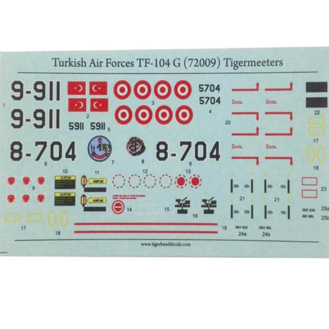 1/72 Turkish Air Forces TF-104 G Tigermeeter, Tiger Head Decals 72009