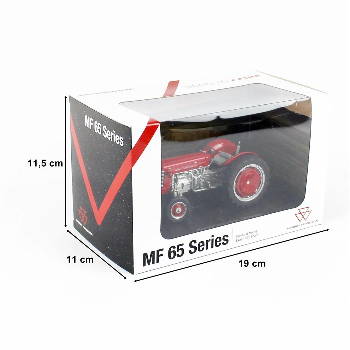 Kutu içerisinde 1/32 ölçekli Massey Ferguson 65 (Amerikan Tipi) Traktör Diecast modeli ve koruyucu ambalaj bulunmaktadır. Montaj gerektirmeyen, tamamen hazır bir koleksiyon parçasıdır.