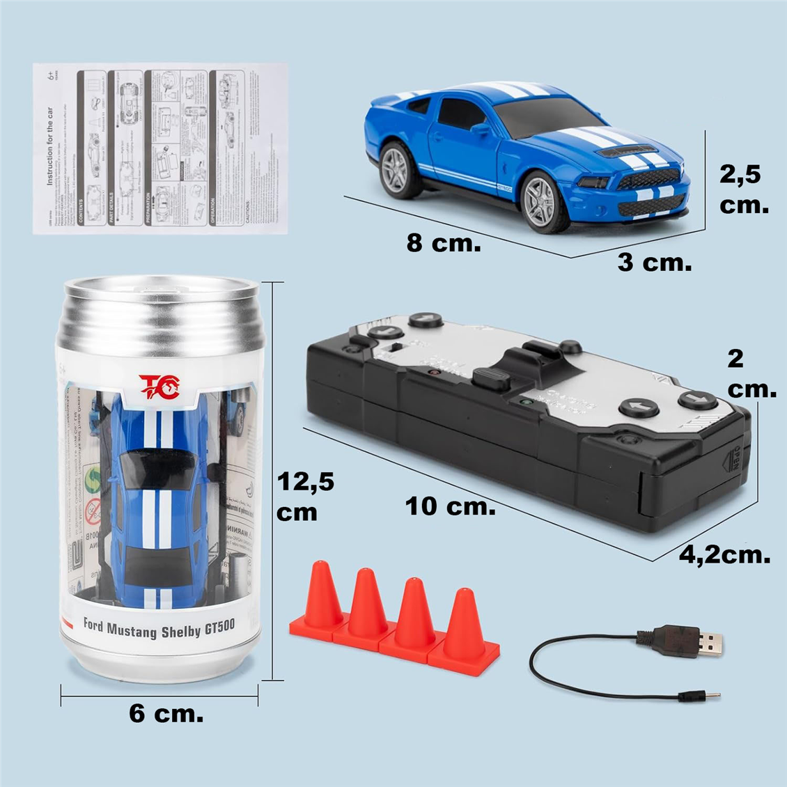 Uzaktan kumandalı 1/60 Ford Mustang GT500 mavi küçük oyuncak araba