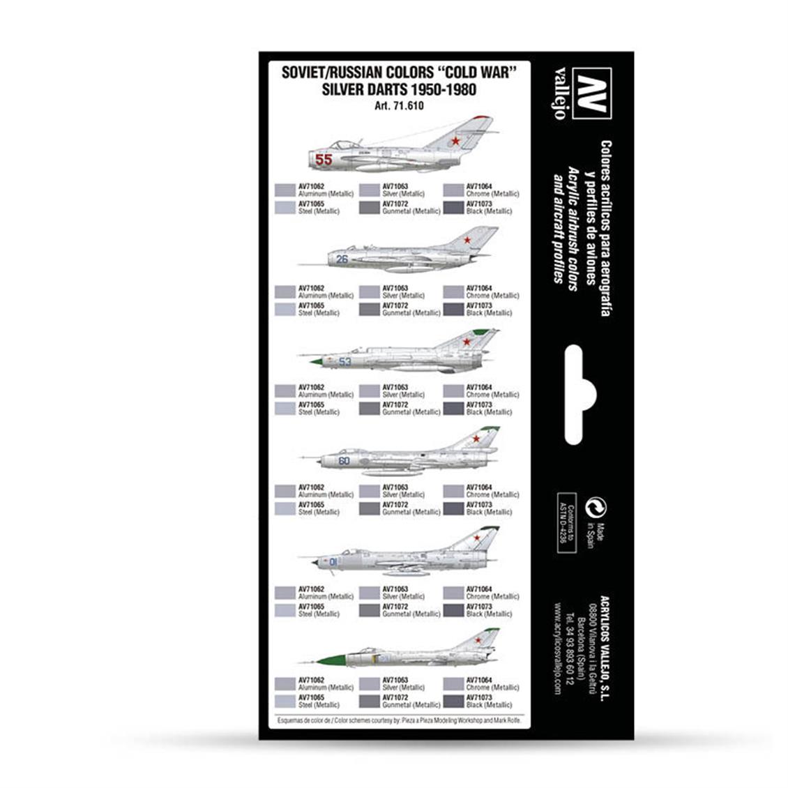 Vallejo 71610, 8×18 ml. 1950–1980 Sovyet/Rus renkleri Soğuk Savaş Gümüş Oklar Model Air Boya Seti